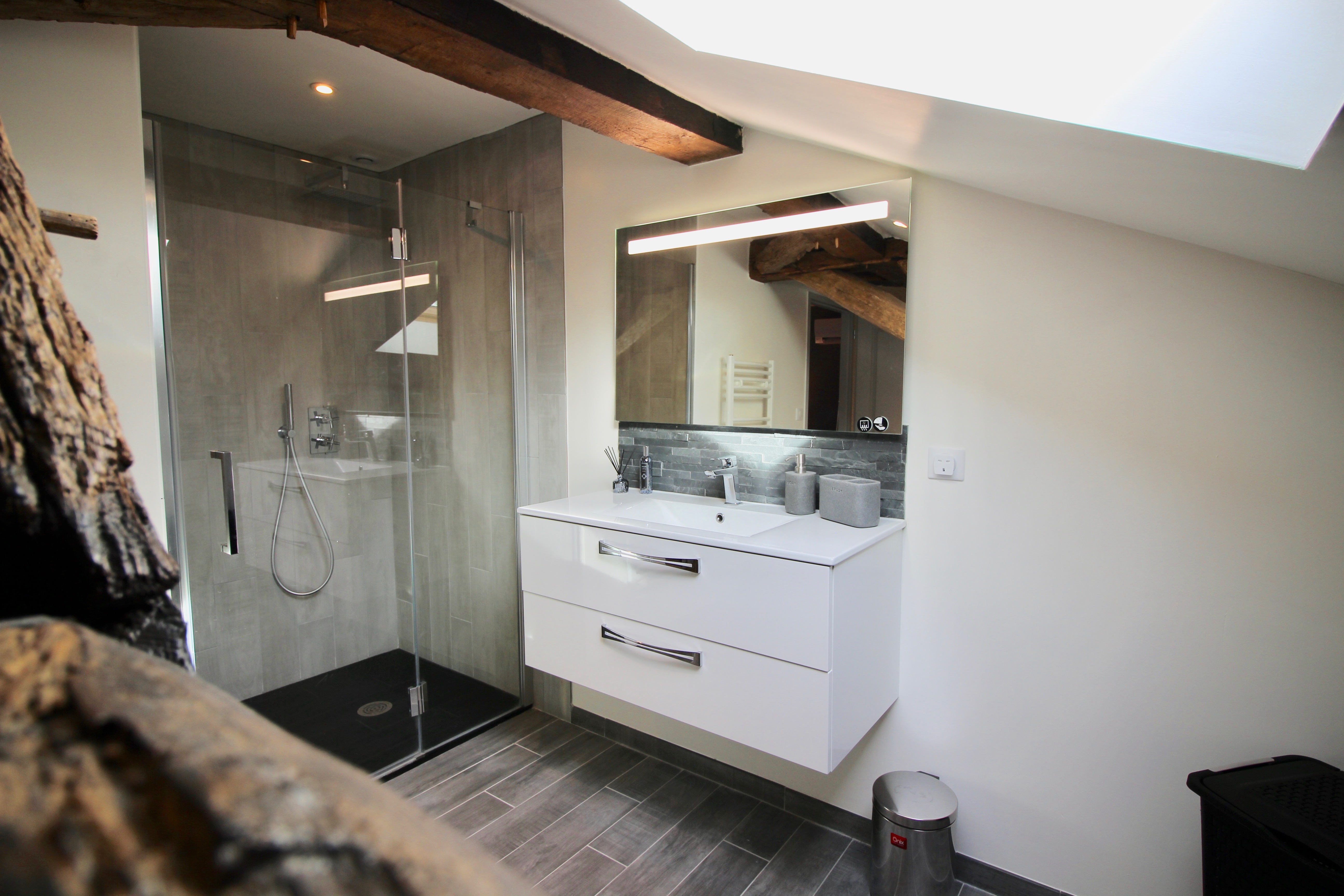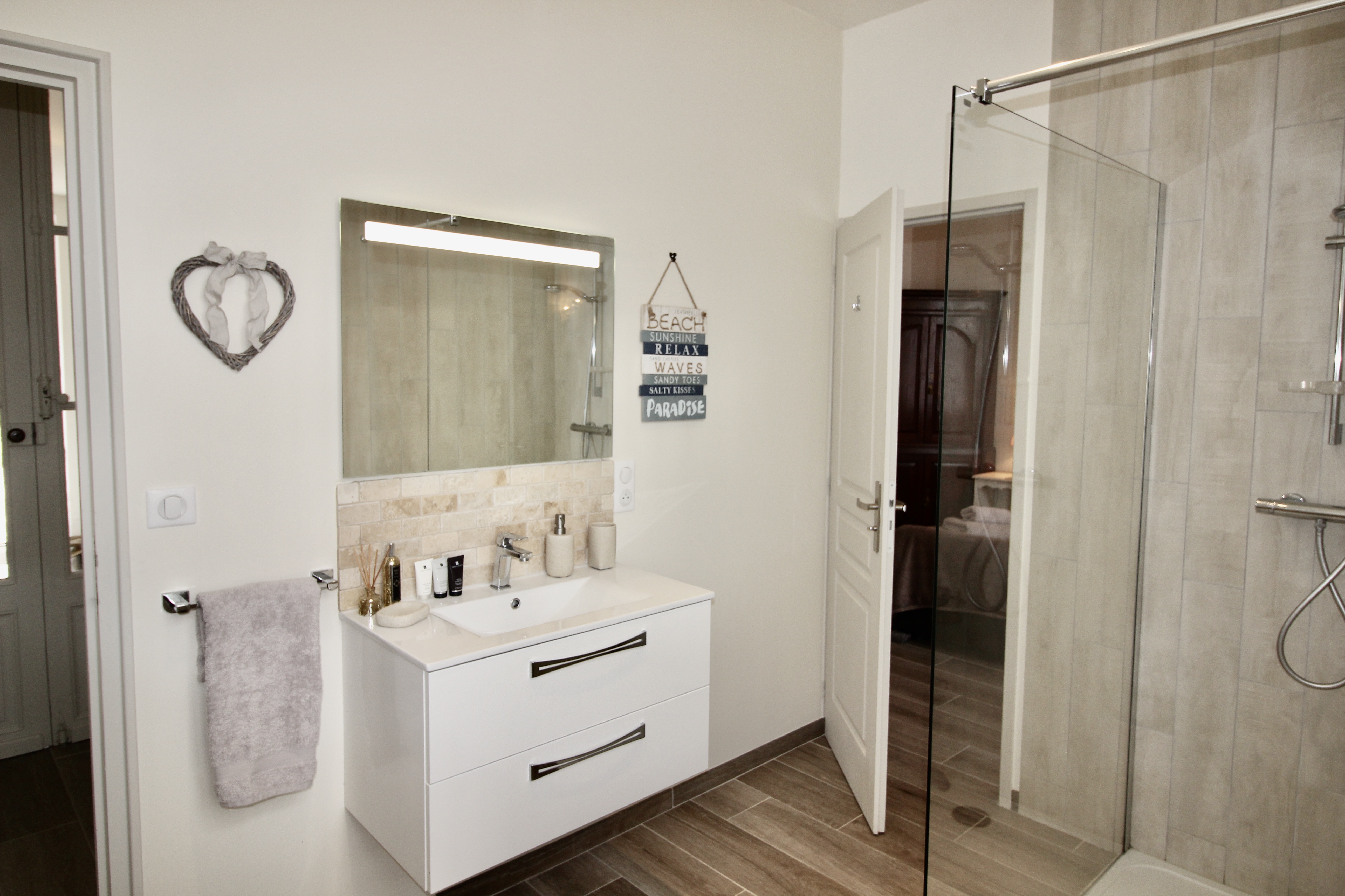 Ensuite to Bed 1 - large rainfall shower and vanity basin unit