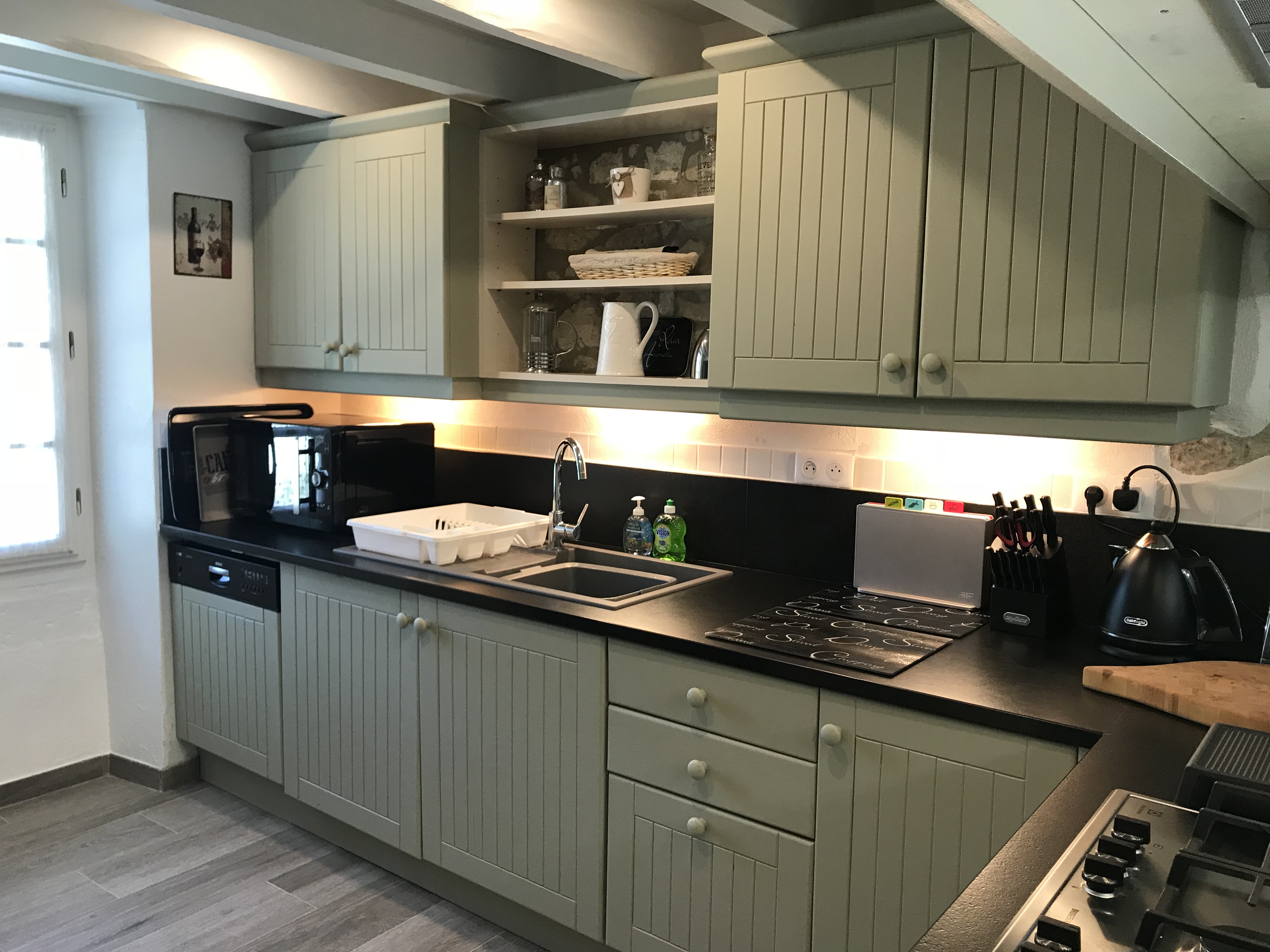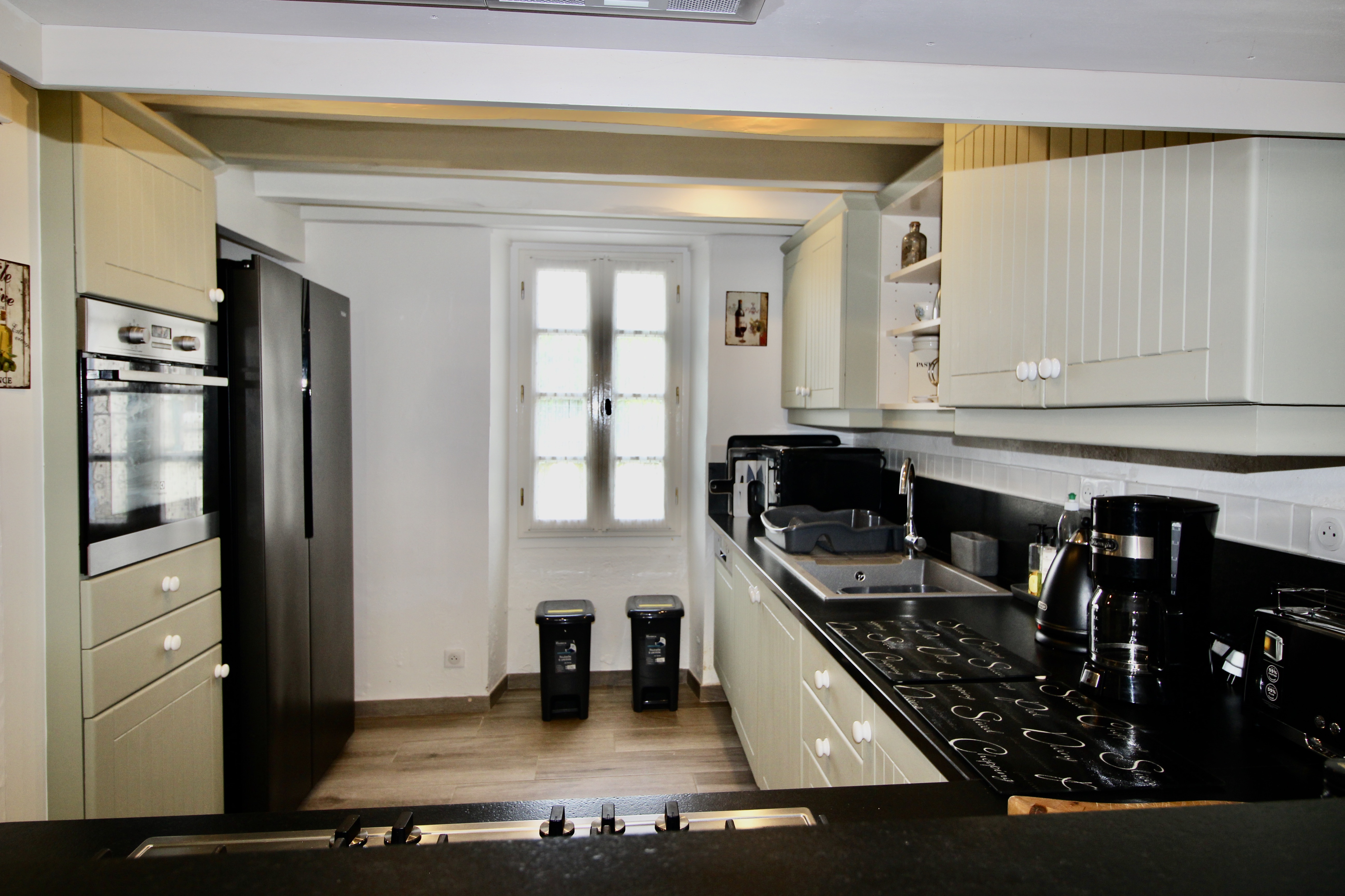 Fully equipped kitchen area with American Fridge/Freezer, dishwasher, oven, hob, microwave, coffee maker, toaster
