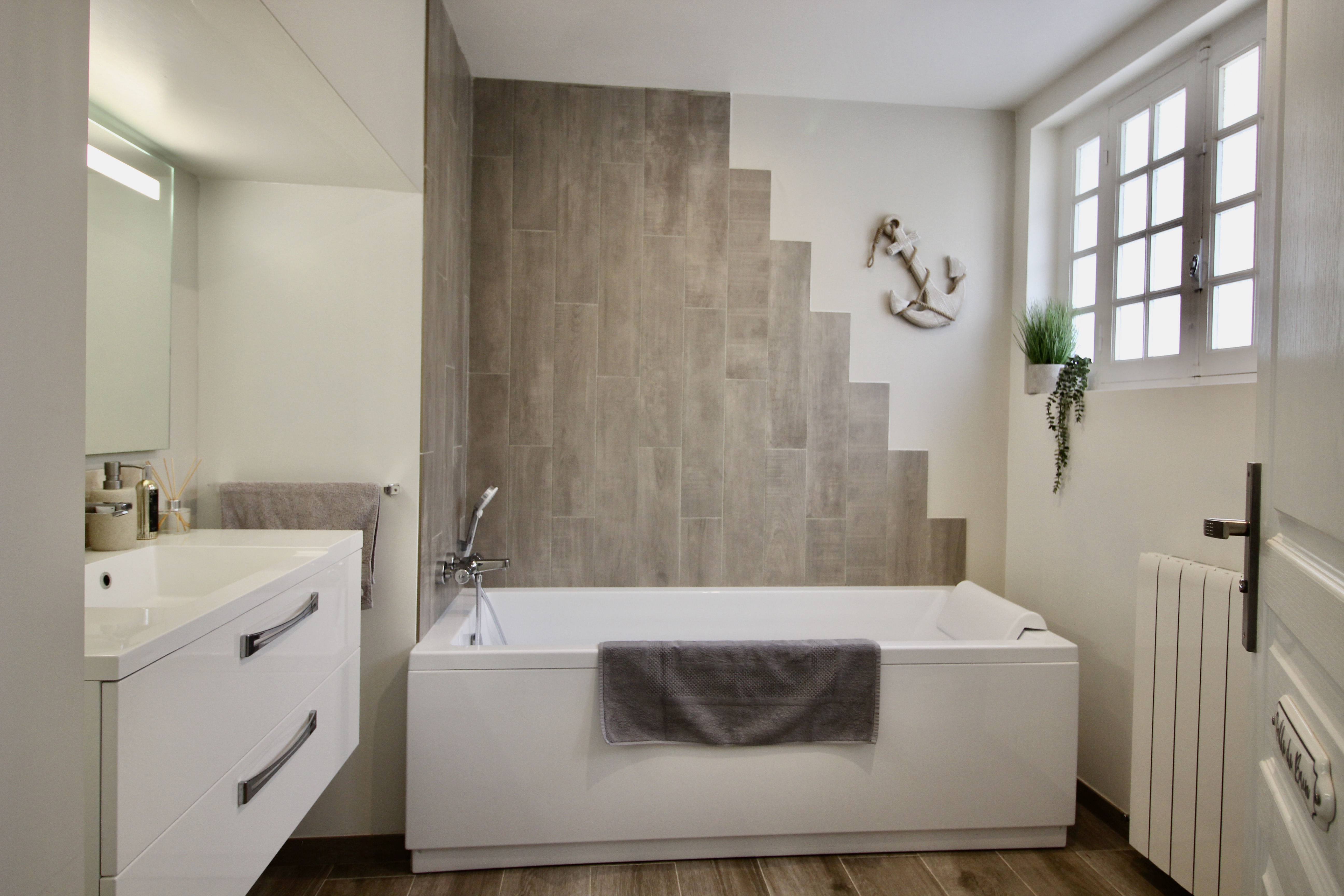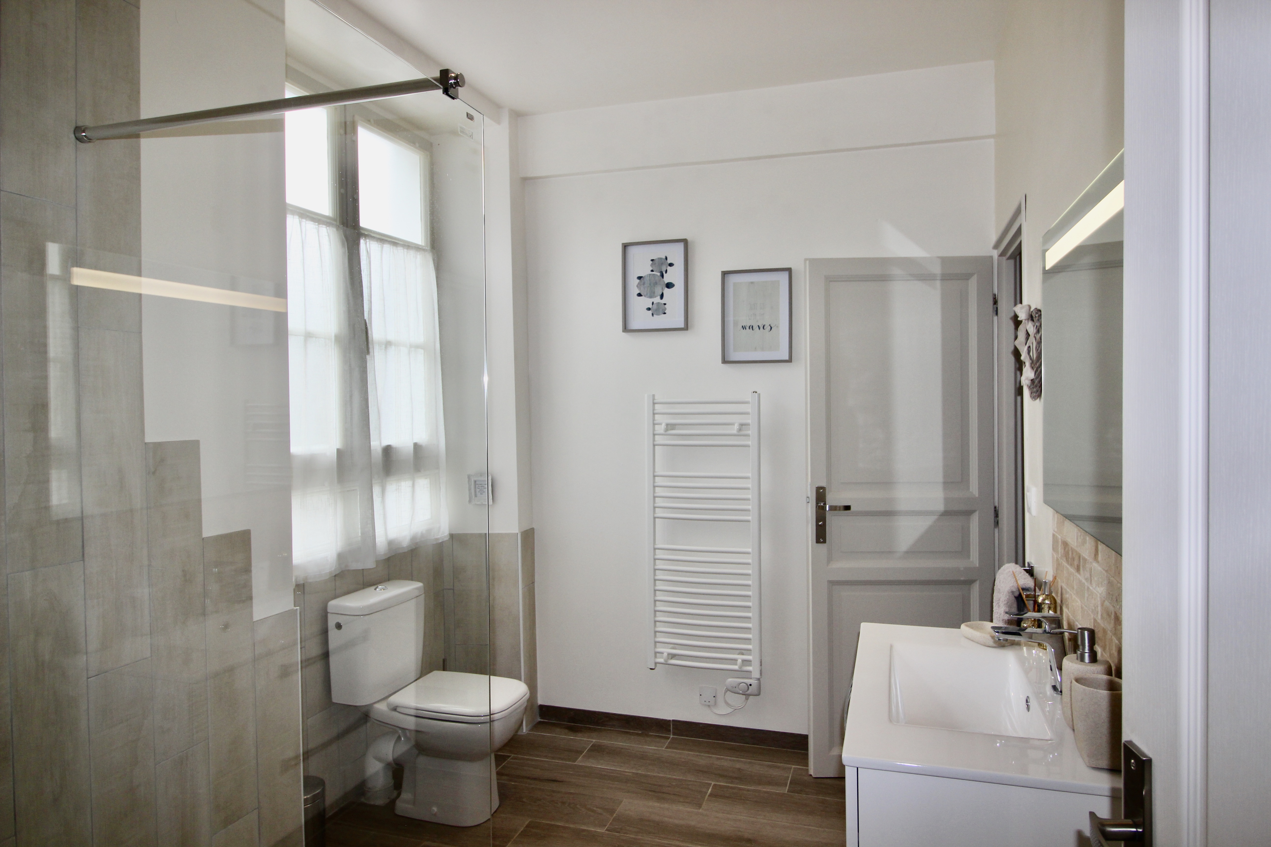 Family Bedroom ensuite with vanity basin unit and heated towel rail
