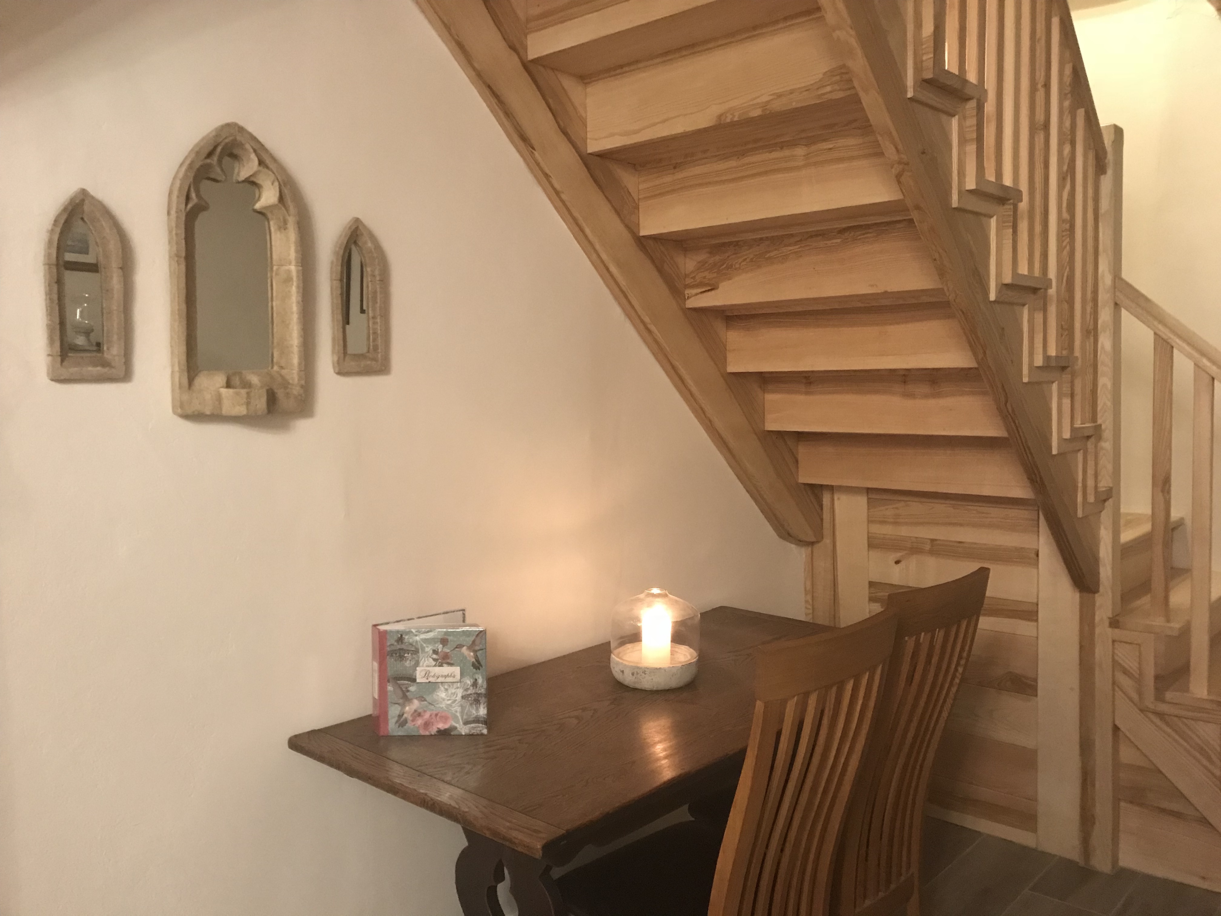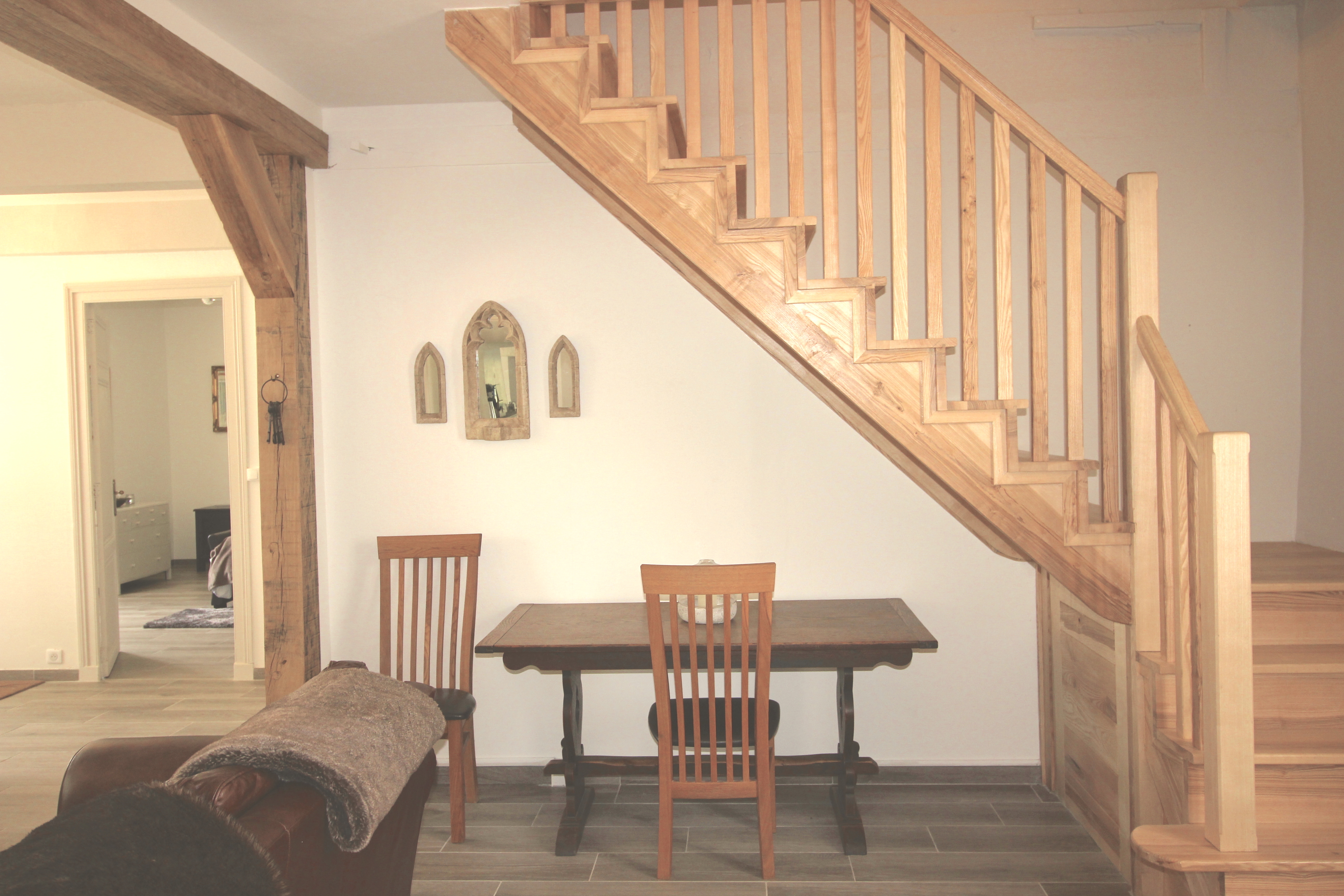 Beautiful handmade ash staircase with oak table/work-station beneath