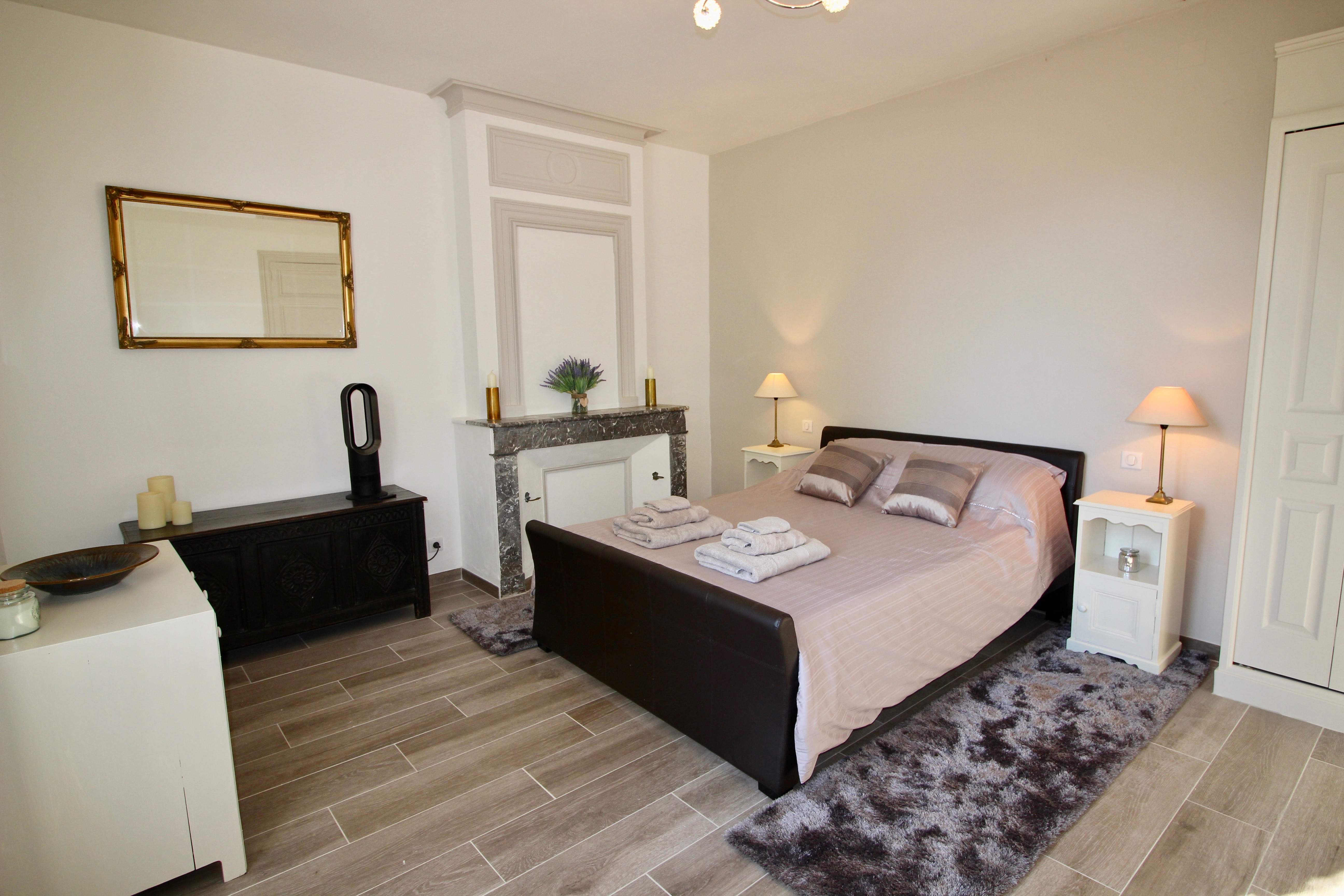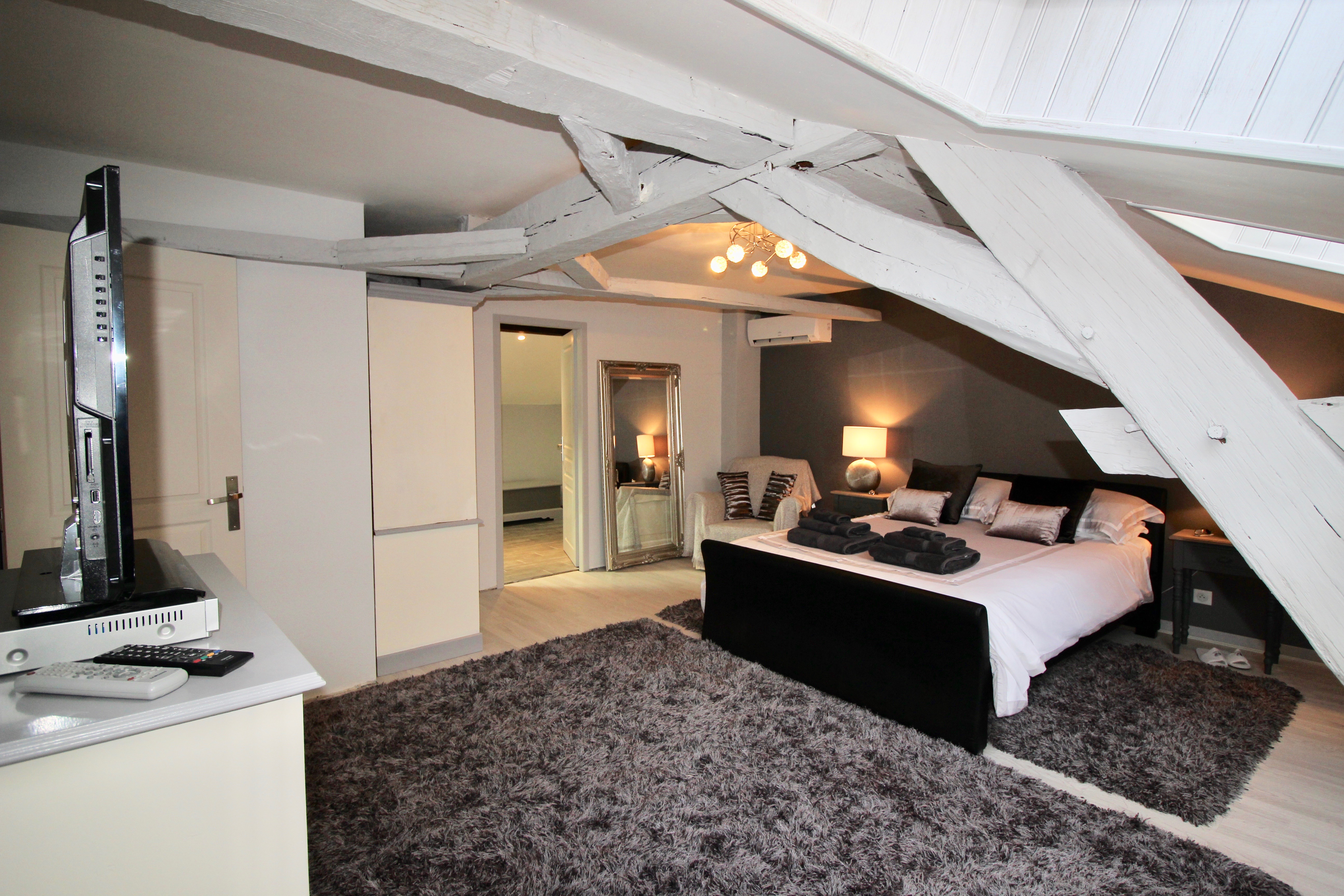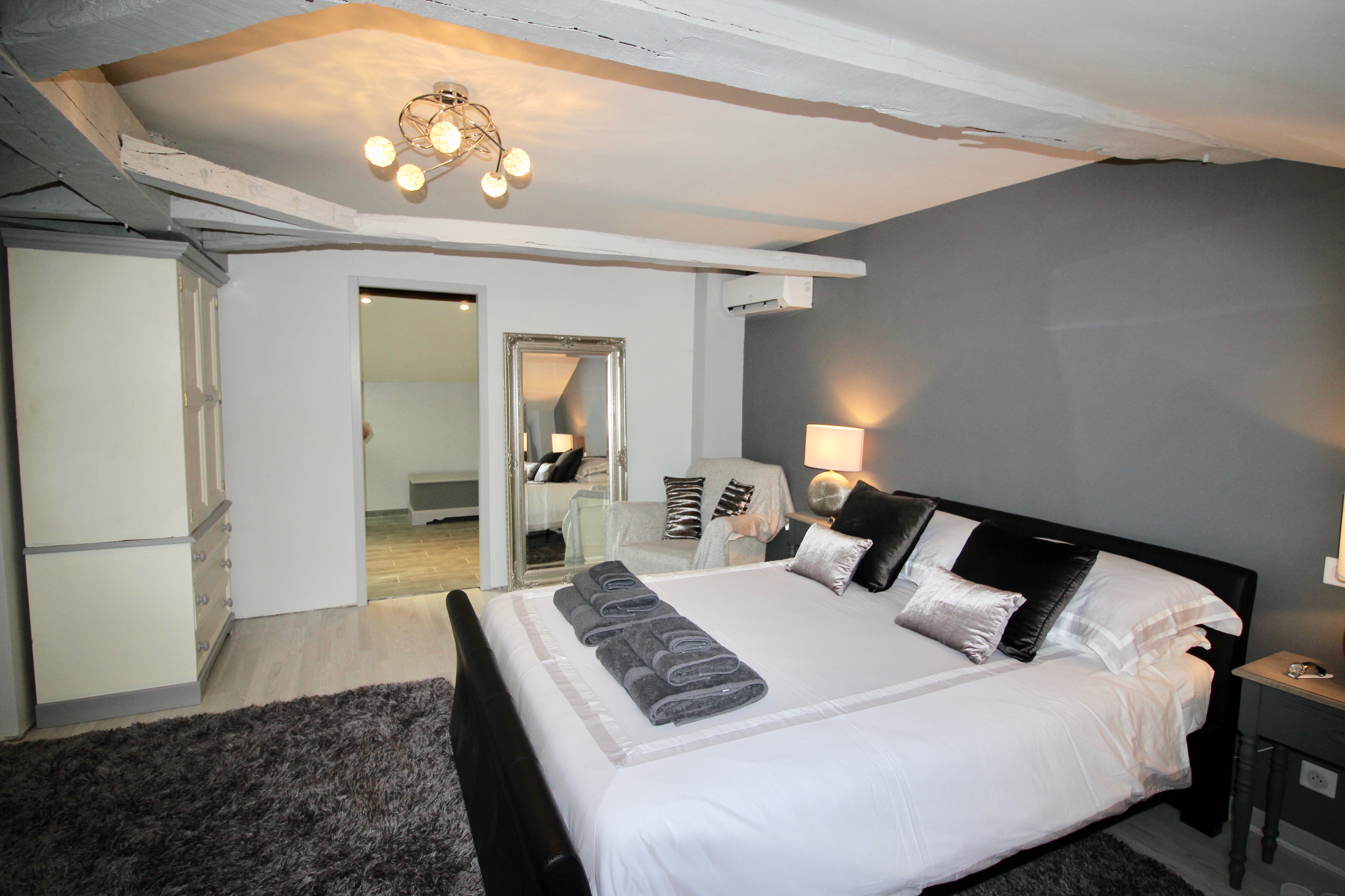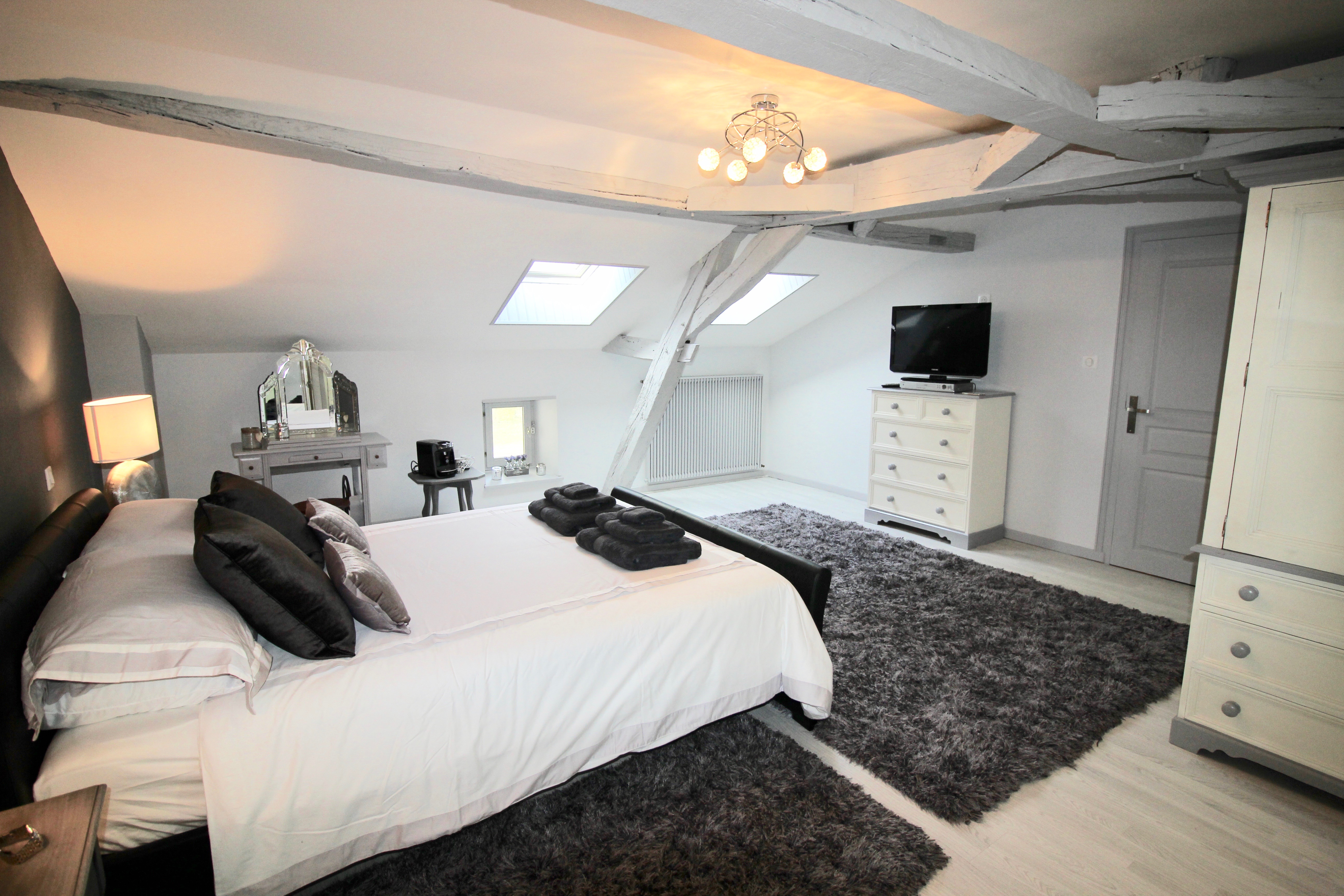 Bedroom 1 (first floor) king size bed and single bed - a lovely air conditioned, spacious, beamed room