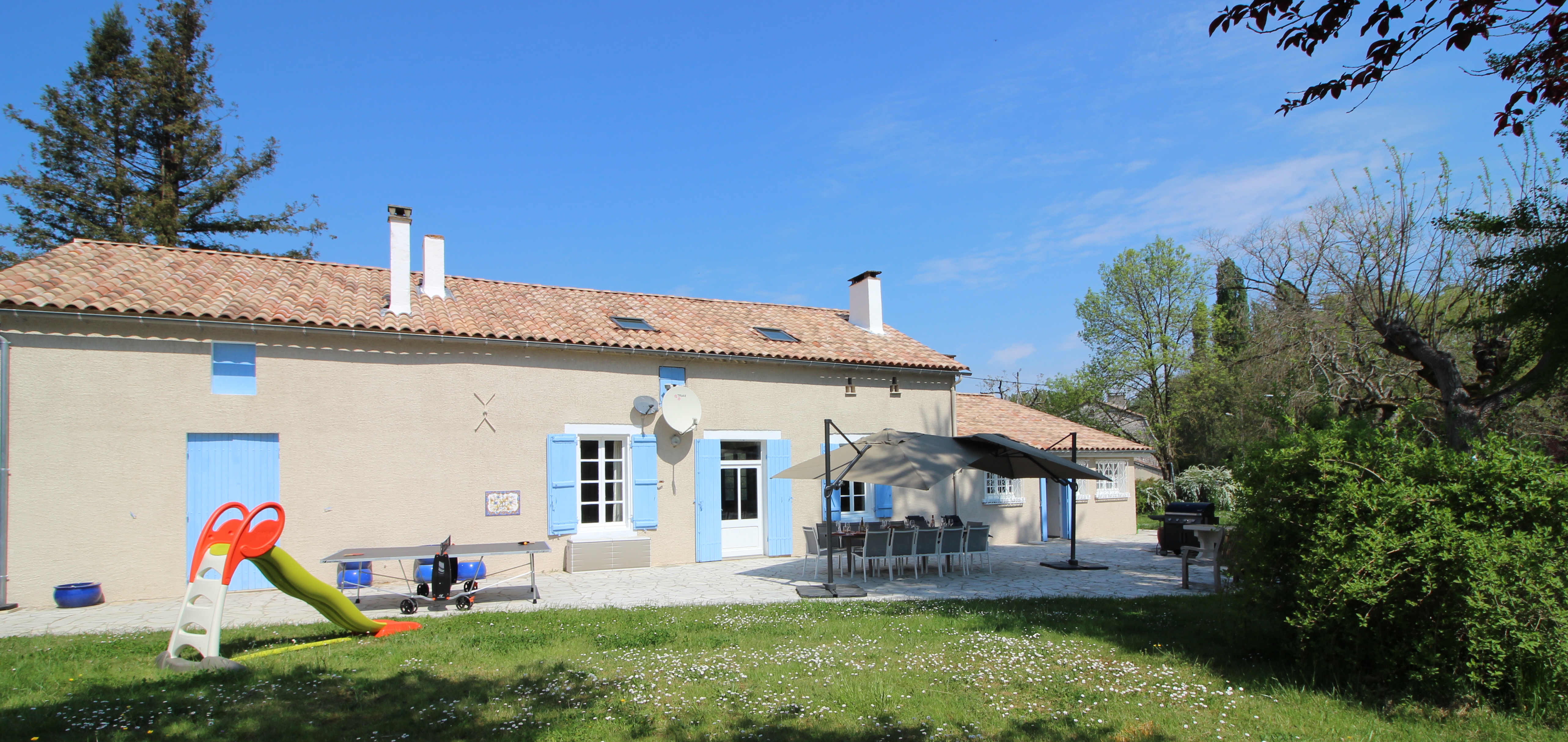 Les Arbres terrace and garden with table tennis, dining table, children's play equipment