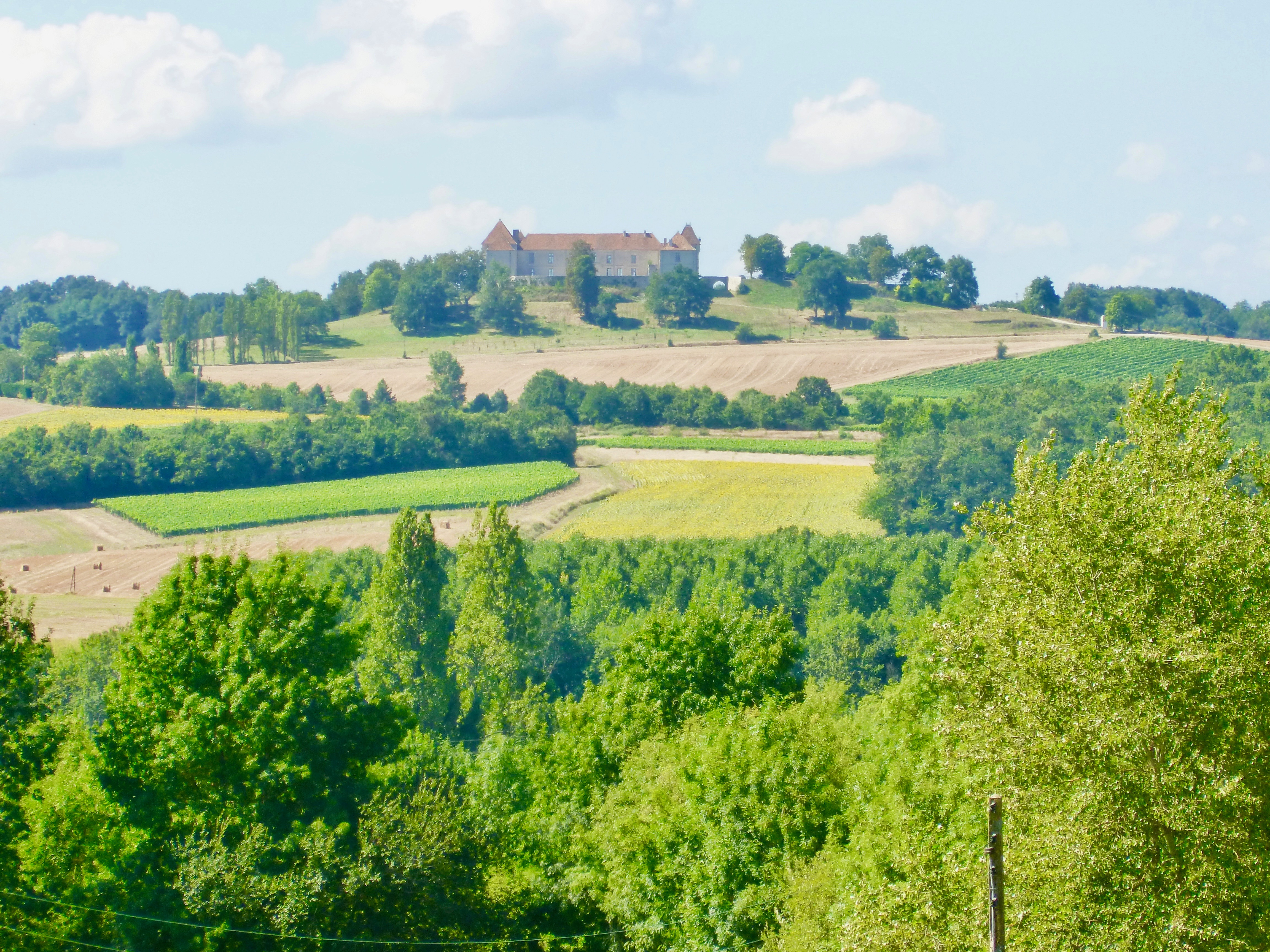 Dining for up to 12 on the terrace with view down the garden to the pool