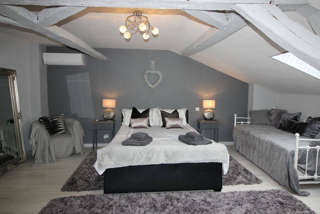 Family ensuite bedroom (first floor) with double bed and 2 single beds